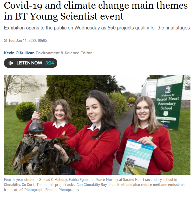 Some of our Young Scientist students made the Irish Times yesterday. For more details please see the link below: