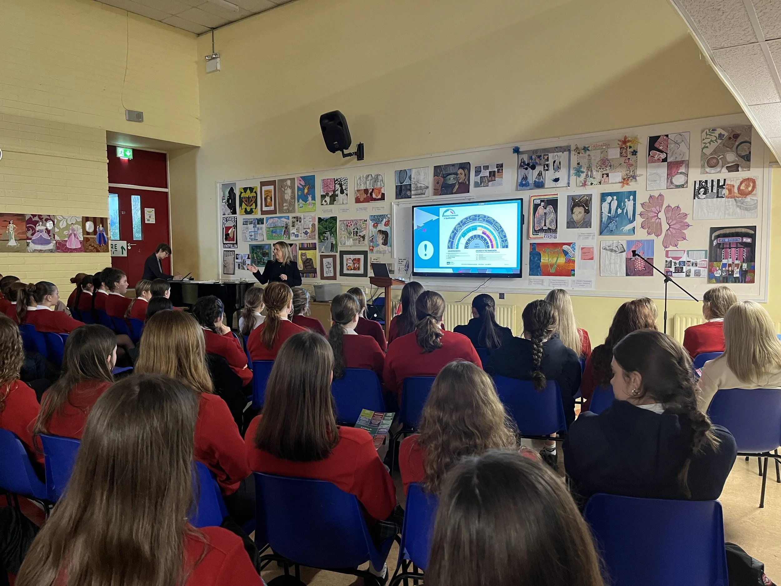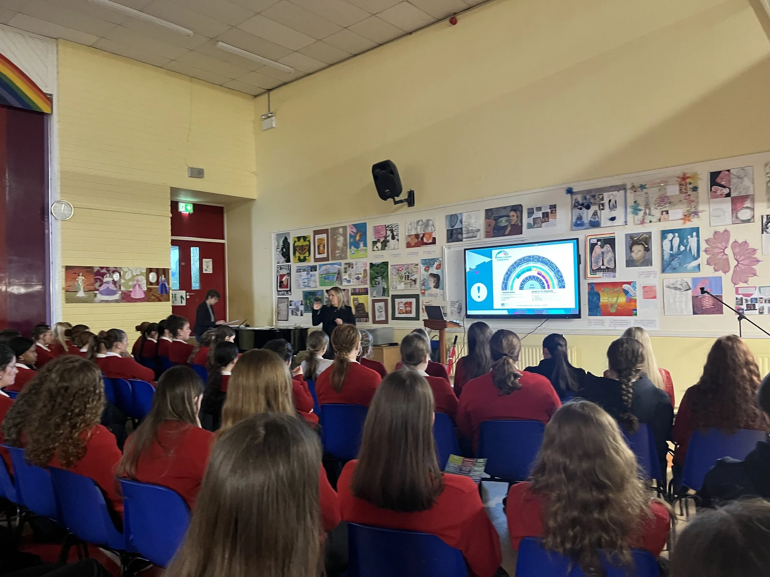 Ms Colette Twomey from Cork Education and Training Board spoke to Transition Year and 6th Year students about Further Education and Training Options. This is an up and coming sector with more options now than ever including apprenticeships and tertiary routes into business,computing, nursing, occupational therapy and more. Thanks so much to Colette for supporting the school guidance programme where students are encouraged to plan their pathways to further education and training.