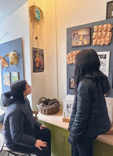 The Geata Arts was a very interesting experience. It was full of different masks, made from different materials found in meadows that are made for the Samhain Festival every year. Mark, of the Geata Center showed us many different designs, and paintings all using different materials. He showed us some of his own creations ,and was very excited to show us around the work shop / Studio.