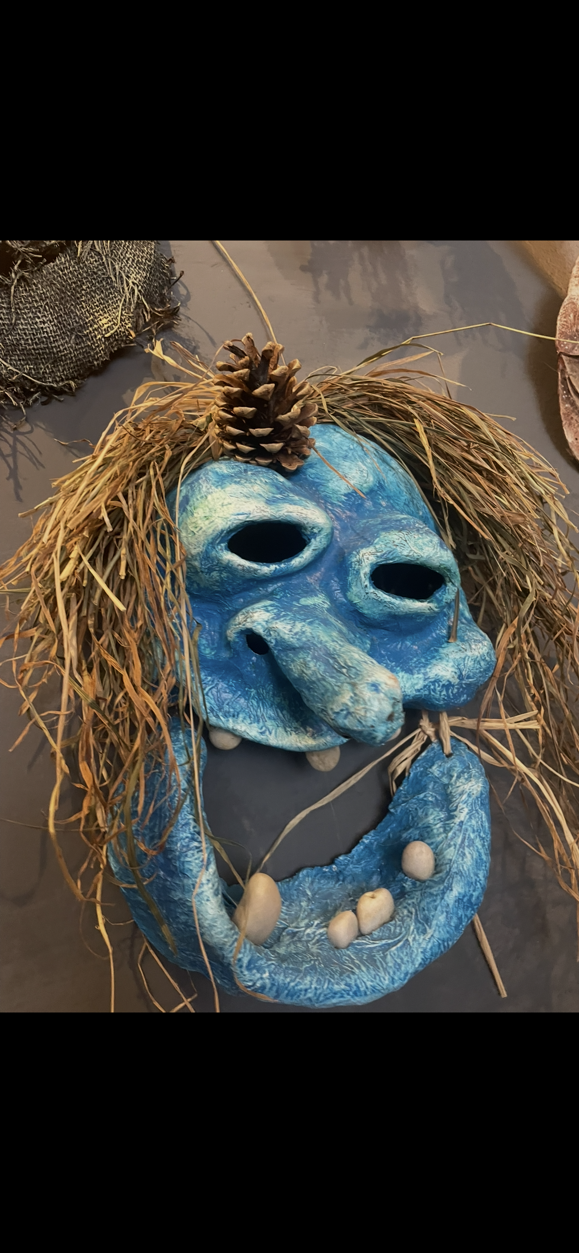 The masks all looked different .There were animals ,and people of all different sizes and shapes. Mark told us that it is harder to find natural materials for the masks now , because they can’t get access to meadows, or green areas anymore because the farmers are cutting down the grasses and leaves. He expressed his concern for the environment, and was eager for us to know more about it. It was a very cool day out for our class and it was very interesting to know about how everything is made for Samhain!